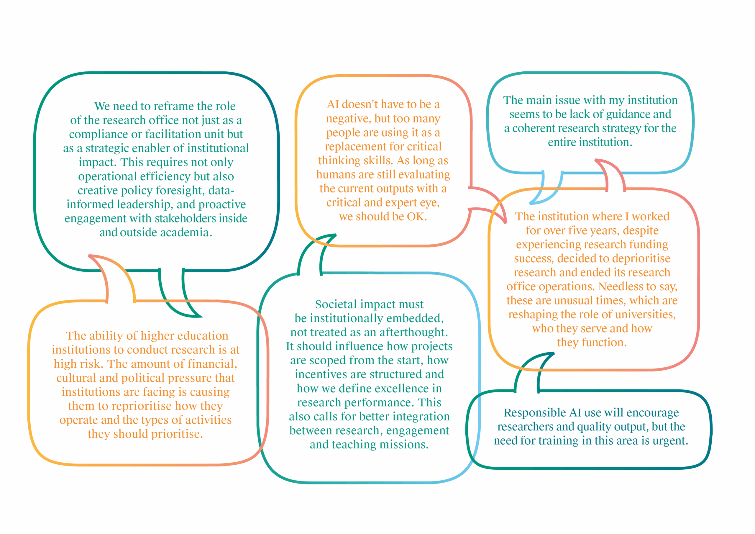 “We need to reframe the role of the research office not just as a compliance or facilitation unit but as a strategic enabler of institutional impact,” one respondent told us.