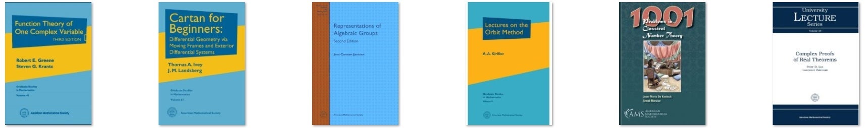 美國數學學會於1888年成立至今130多年來,已經出版了非常大量高品質之高等數學領域的書籍,包括19世紀以來數學專業領域的各種會議論文集(Proceedings)、專書(Monograph)以及專論(Memoirs)。