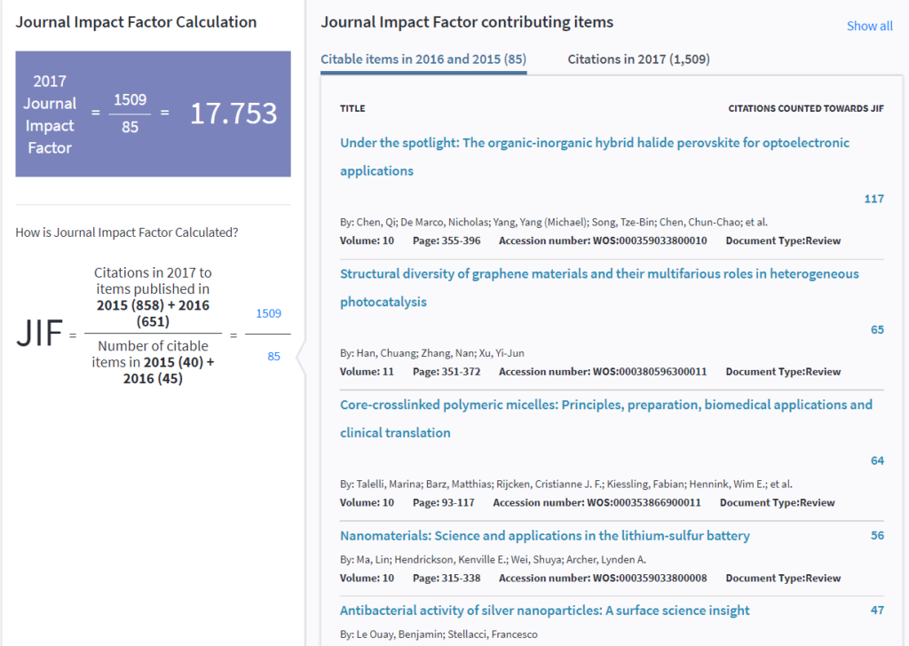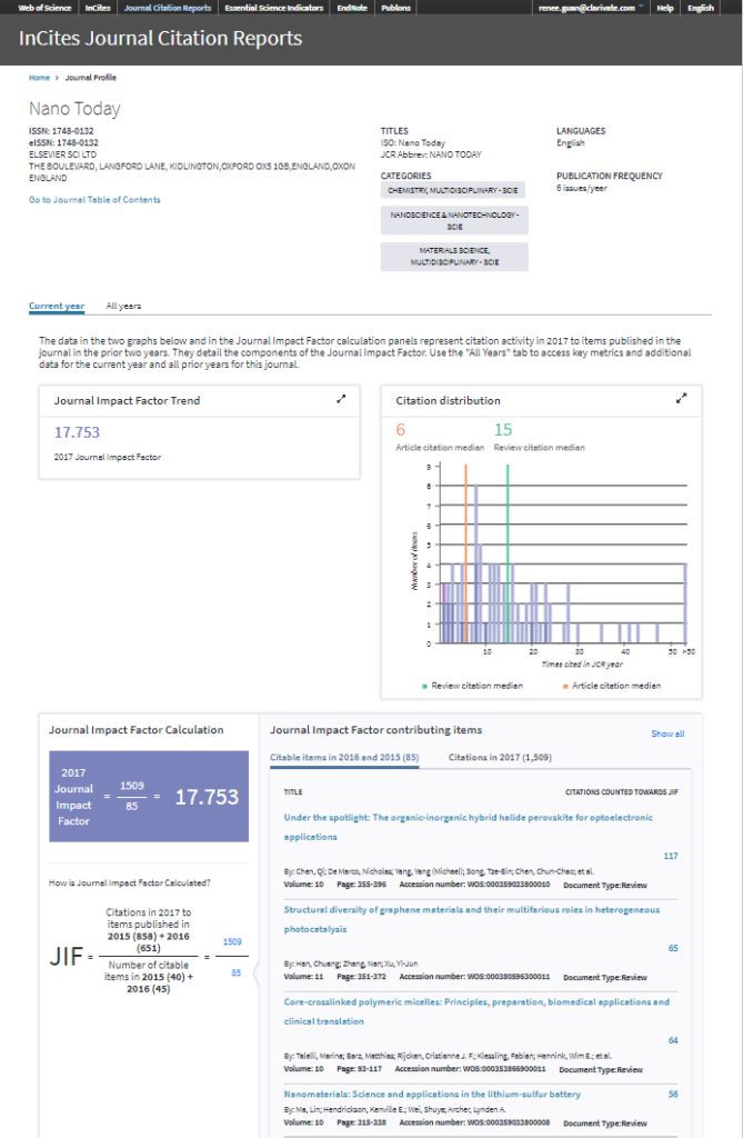 JCR在6月26日正式發布最新2017的 Impact Factor 等多項期刊指標。今年科睿唯安想藉由JCR告訴大家的是「每一本期刊都有它的故事」,因此在這次的正式發布,已有很多人發現資料庫似乎有點不一樣。沒錯!為了讓大家更了解每本期刊都是由許多的研究者的貢獻而組成,我們在每本期刊新增了Journal Profile的頁面,呈現更清楚明白期刊的影響力。