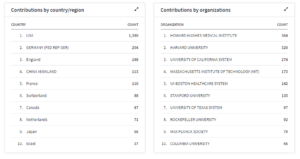 而如果您正緊盯著JCR的資料,應該也發現到我們新增的國家與機構對期刊的貢獻度 (Contributions by country/Region and by Organizations) 。主要目的是希望能為研究者提供這本期刊的受眾群來源,特別是對於正在苦惱如何選刊的研究者或是期刊主編想了解某期刊國際影響力與文章分布來源,這部份的資料是非常有利用參考的價值。