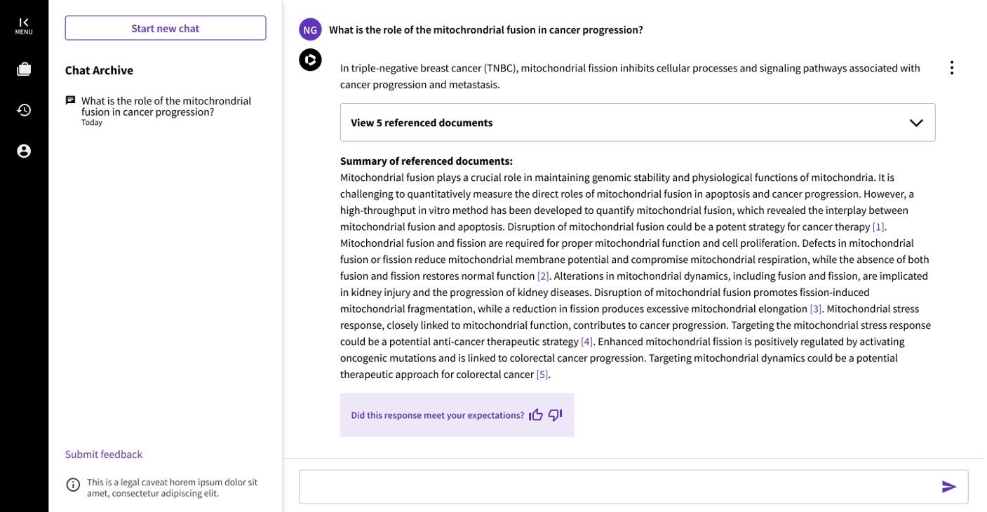 儘管生成式人工智慧顯然有望為研究人員節省時間、減輕工作負擔,但將這種技術應用於研究工作也不無隱患。例如,生成式人工智慧對於杜撰學術參考文獻的情況就表明了如果使用不慎,此類技術就有可能破壞科研誠信、侵蝕人們對科學產出的信任。 所以,研究人員自然會質疑:這項技術當前正處於其開發週期的早期,那麼在現階段能否信賴這項技術?生成式人工智慧必須以負責任的方式進行開發,並部署到研究工具之中,這就要求我們採取一種慎重而敏捷的產品開發方法來聽取採納科研界的意見和指導。