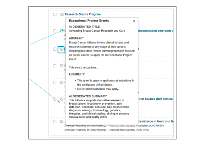 Get clearer context with AI-created titles and summaries that make funding opportunities easier to find and understand.