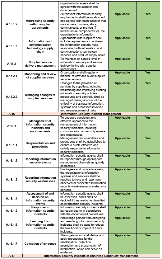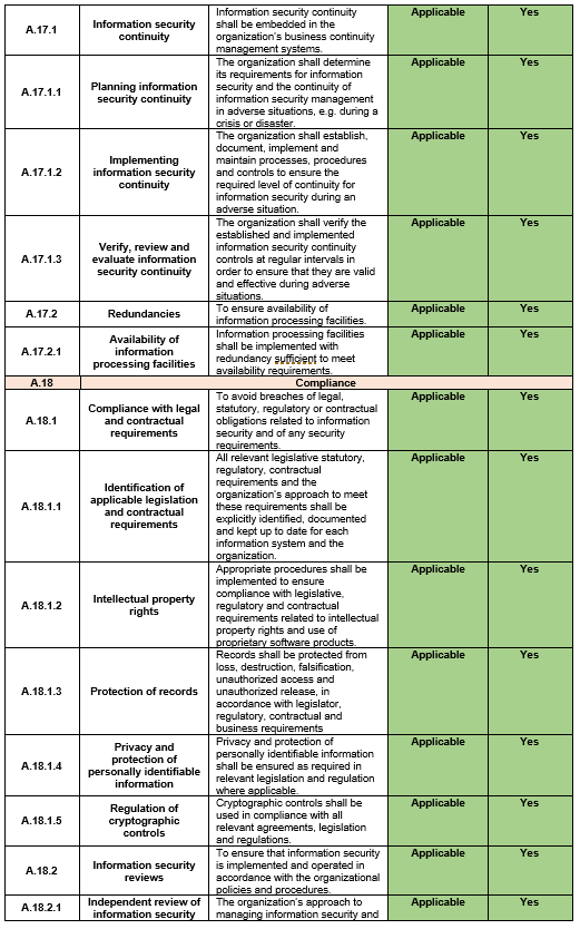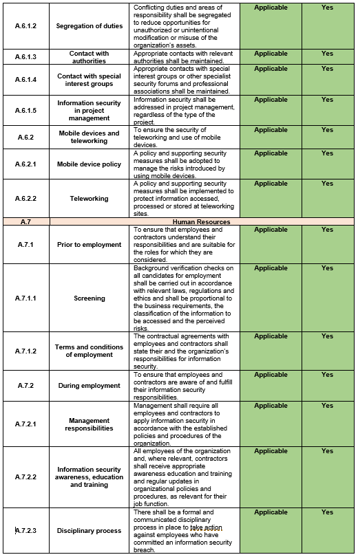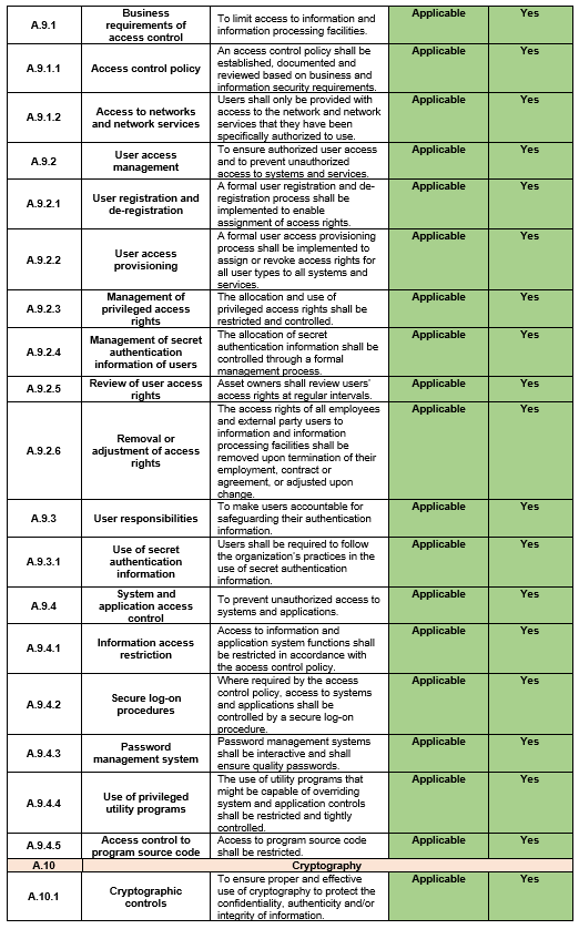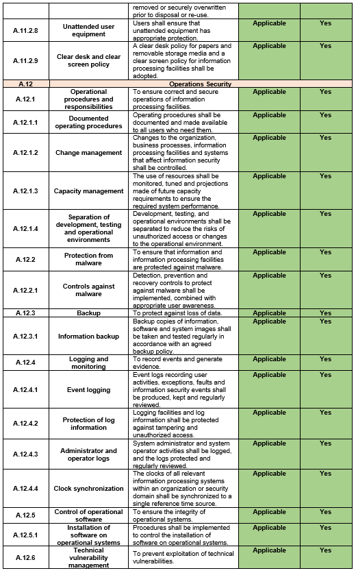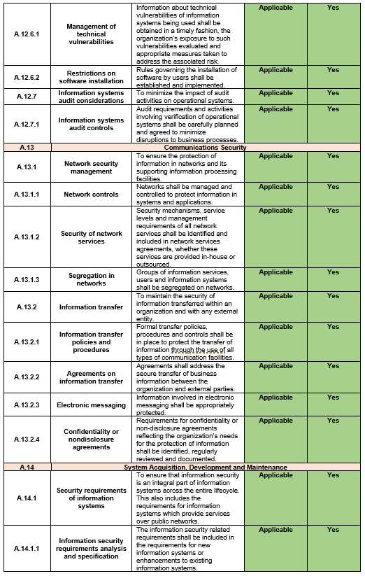 | Document Title: | Statement of Applicability |