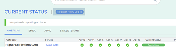 Information/Service Alert Information | Service for the instance is operating normally, with some specific information provided by Ex Libris |