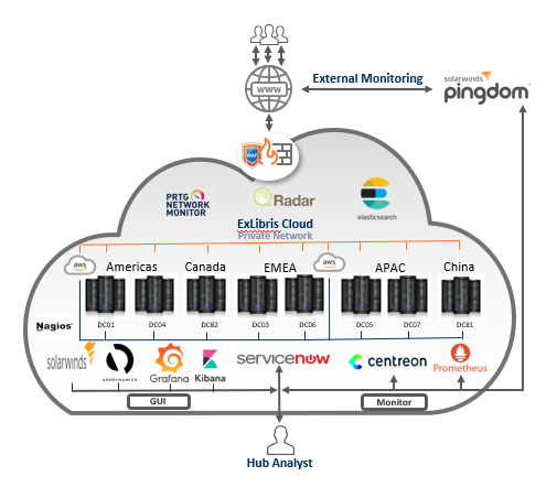 On-Call Engineers – Ex Libris has 24×7 on call expert infrastructure engineers such as, Security, Network, DBA, Storage, System, and dedicated On Call Application Developers that are notified by the operating center in the event of a service interruption.
