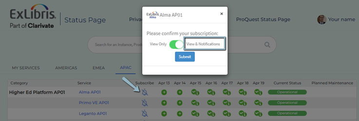 Note: All SaaS environment scheduled activity is communicated via The Ex Libris System Status page.