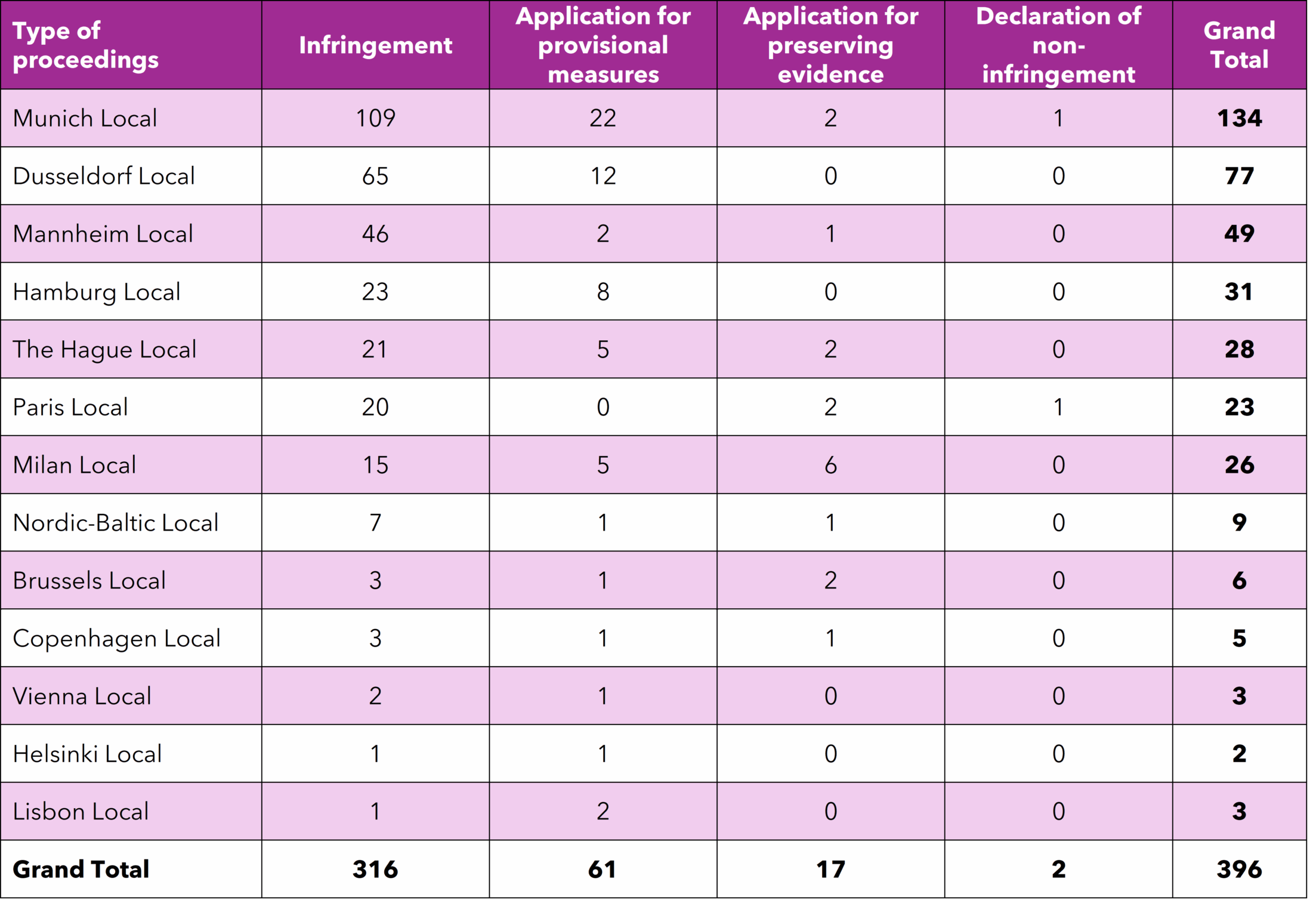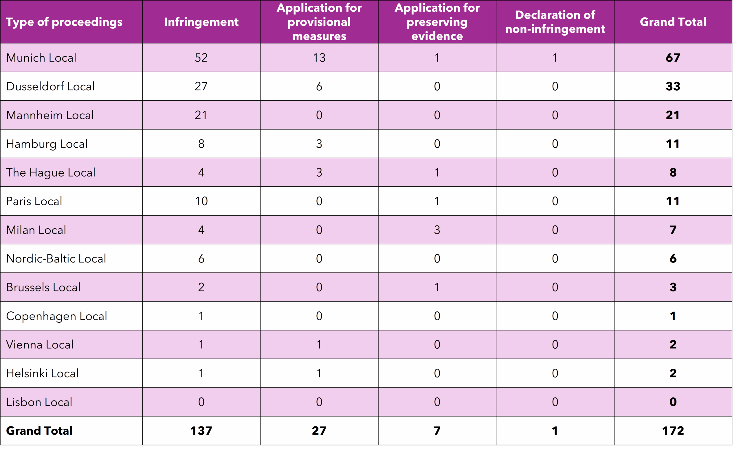 • Coverage: All UPC actions, including main proceedings and preliminary measures, counted as separate proceedings