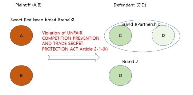 Plaintiff A and B were operating ‘G Sweet Bean Bread’ at KORAIL Airport Railroad Station E and Subway station F. Defendant C worked as a plaintiff’s baker and then left office in 2013 and then operated “I Red Bean Bread” at Subway H Station with Defendant D from 2013.12.5 to 2014.5.21. After the partnership, Defendant D changed his business name to “J Red Bean Bread” and sold red bean bread made in the same way as before. The plaintiff filed a lawsuit for damages against the defendant, in violation of the (j) (currently (k)) of the Unfair Competition Prevention Act.