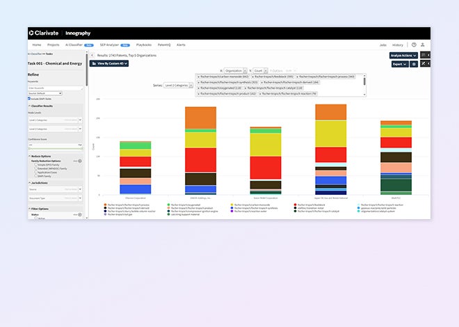 AI Classifier for portfolio benchmarking delivers fast, accurate and flexible classification so you can view your portfolio—or that of a competitor—through your own lens to uncover licensing opportunities, guide R&D investment, and gain competitive insight.