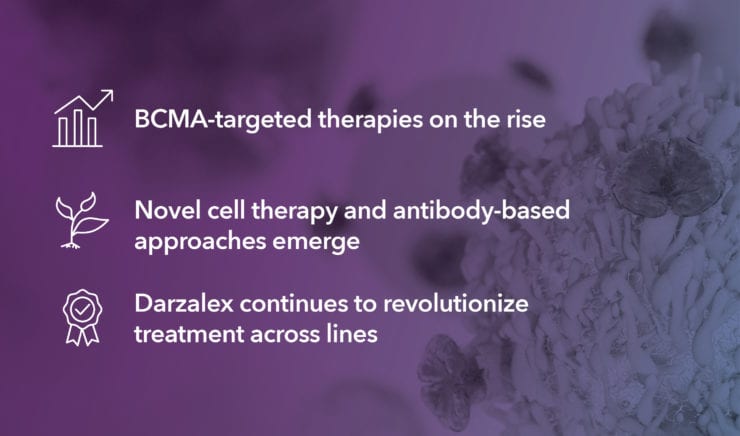 Accelerated innovation in drug design and development is providing diverse treatment options for cancer patients, including hematological malignancies, like multiple myeloma. However, innovation has complicated physicians’ therapy selection and decision making, including how best to sequence treatment across lines of therapy. Thereby contributing to an unmet need for indications like multiple myeloma, that are typically associated with frequent disease relapse and recurrence. Nevertheless, the pipeline for multiple myeloma is competitive and bursting with a potential arsenal of future treatment options. There are a few novel therapies that stand out as potential game changers and disruptors through 2020 and beyond.
