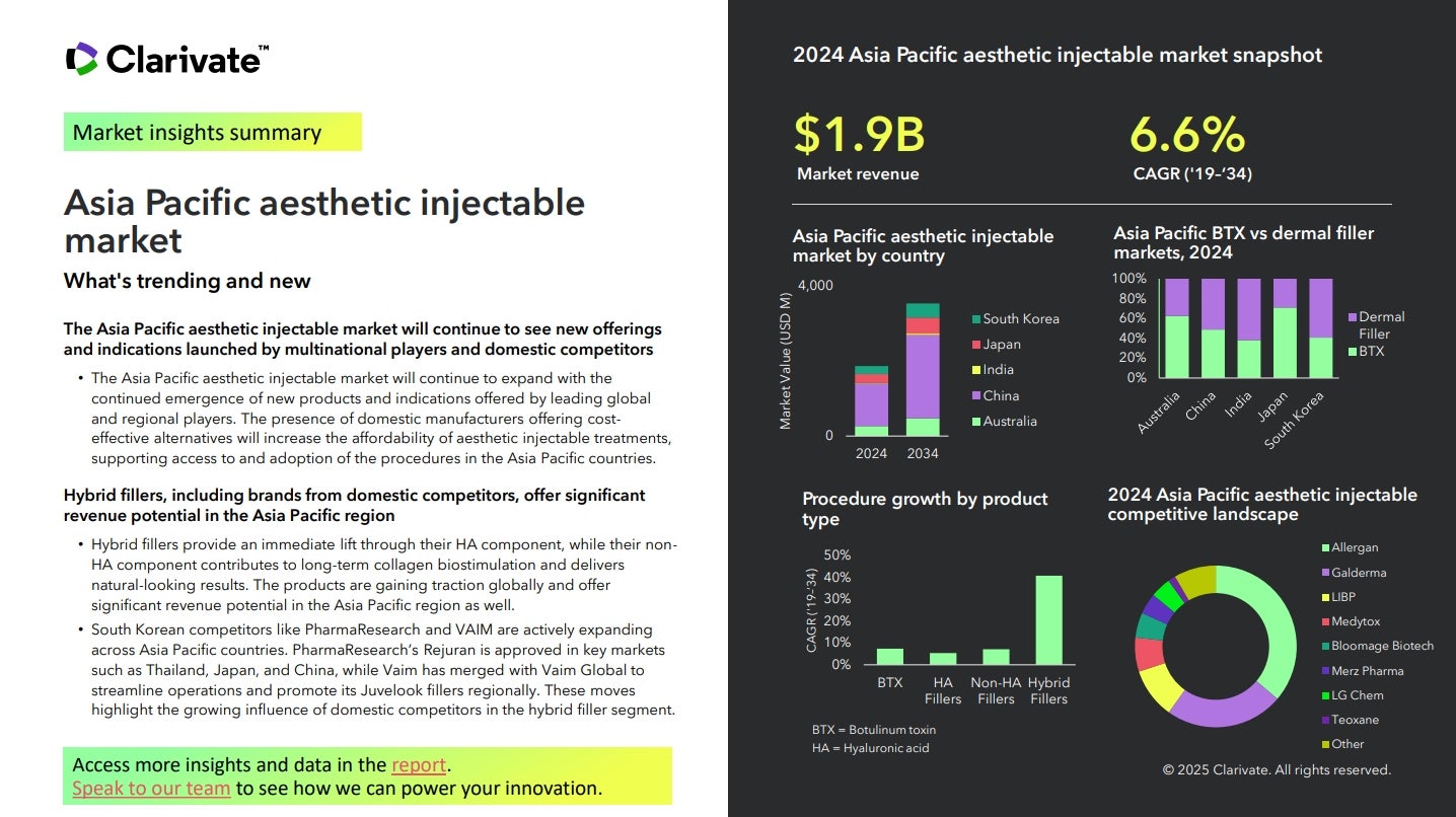 Read our Market Snapshot to access data and analysis on the state of the market for aesthetic injectables in the Asia Pacific region from 2019 through 2034.