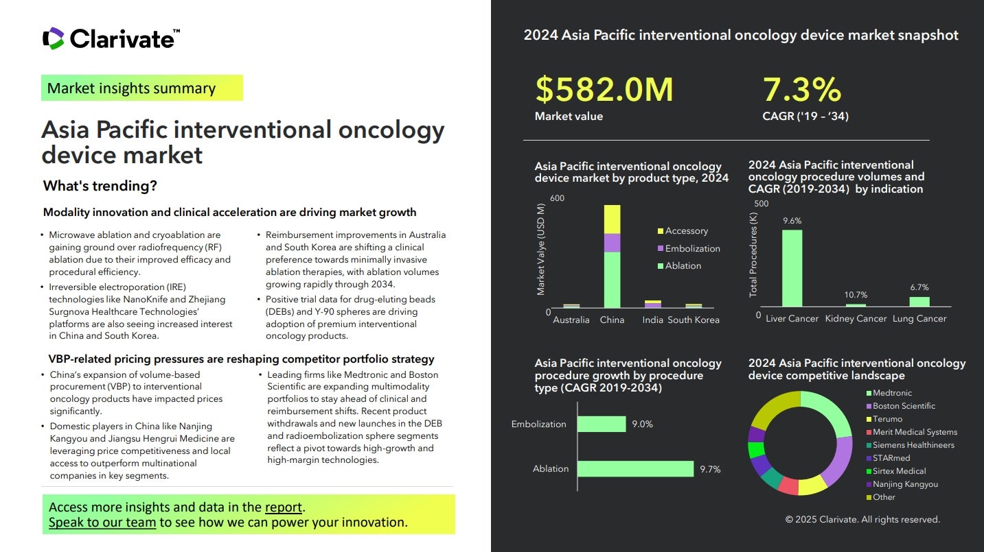 Read our Market Snapshot to access data and analysis on the state of the market for interventional oncology devices in the Asia Pacific region from 2019 to 2034.