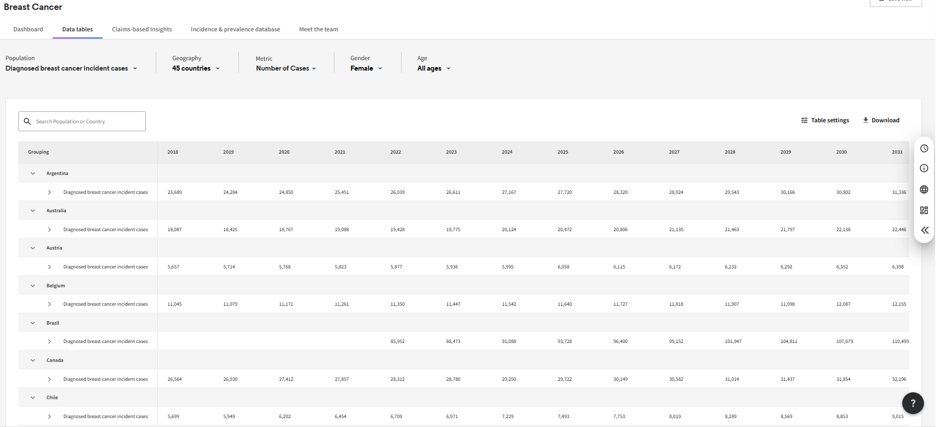 - Breast cancer prevalence data: Global insights across 171 countries from 40+ expert epidemiologists.