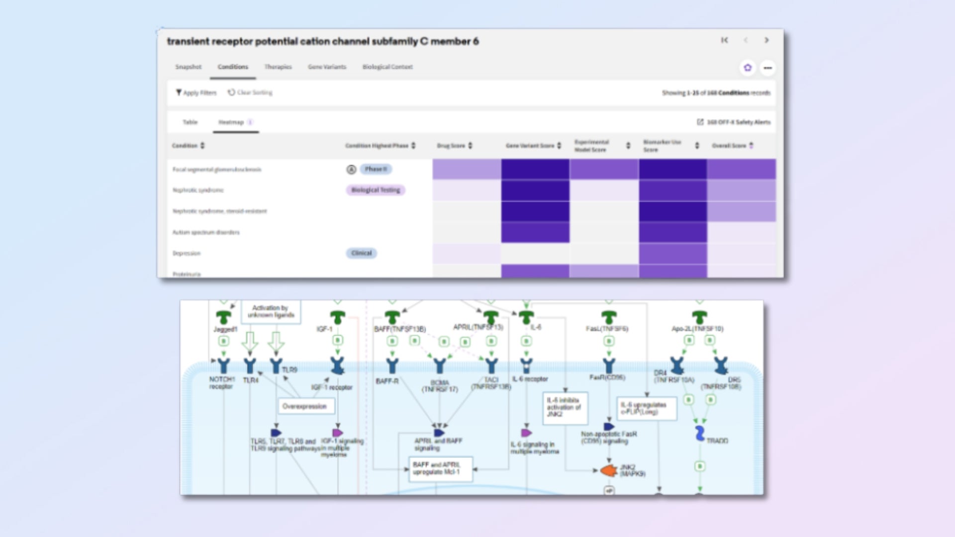 Make confident go/no-go decisions with our target-disease scoring heatmap and quickly access detailed insights on target roles, lifecycle phases and key references.
