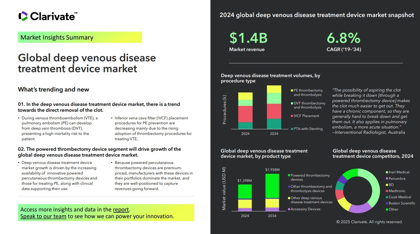 Read our Market Snapshot to access data and analysis on the state of the global market for deep venous disease treatment devices from 2019 through 2034.