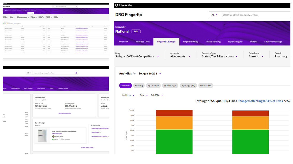 - Fingertip Coverage: Track coverage across medical and pharmacy benefits by plan, therapeutic area, and product. Quickly identify where your brand is listed and the breadth of coverage across payer plans.