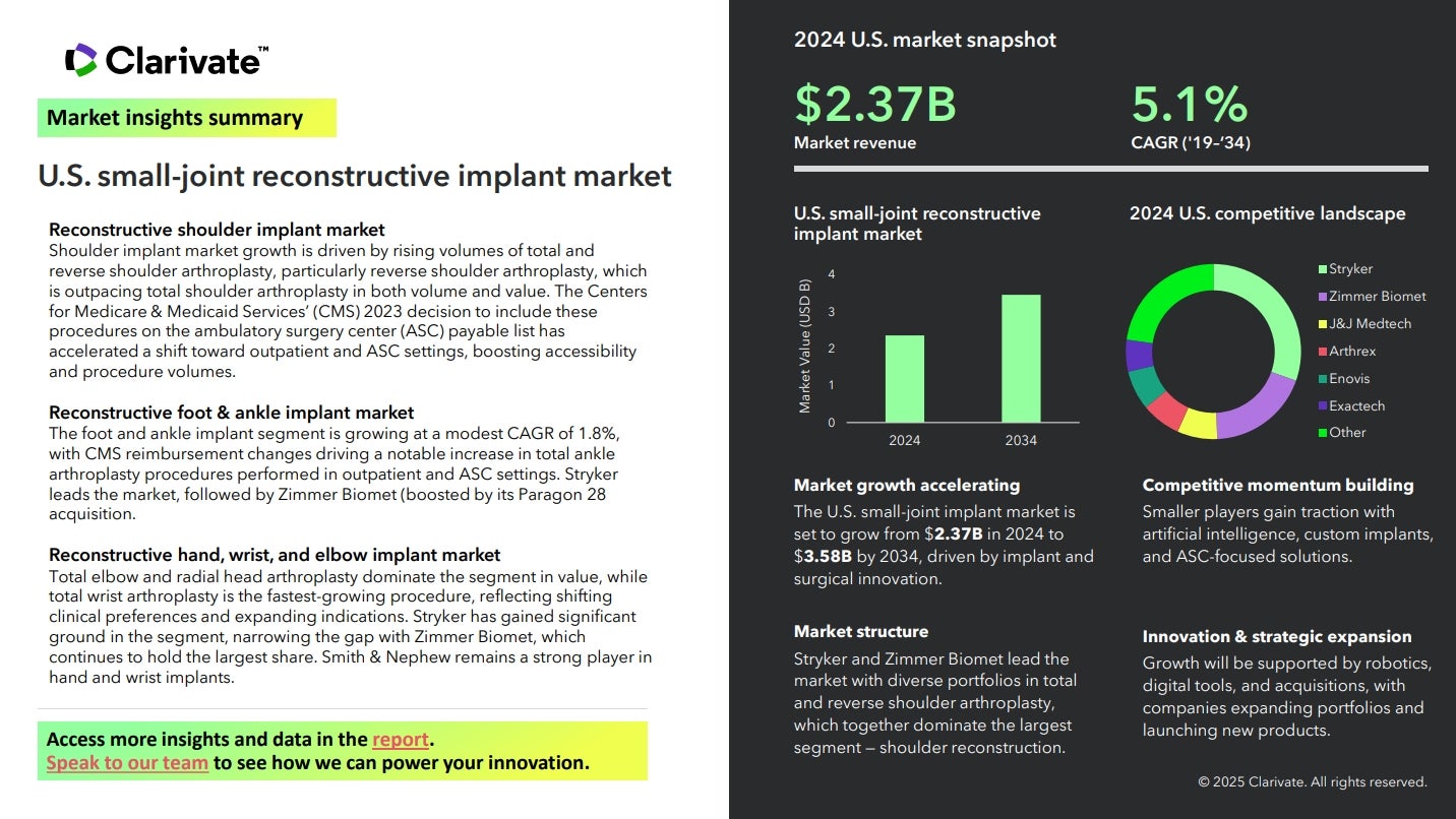 Read our Market Snapshot to access data and analysis on the state of the U.S. market for small-joint reconstructive implants from 2019 through 2034.