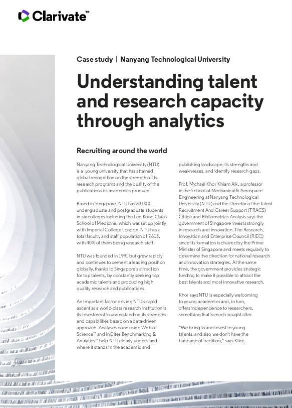 Download a copy of our case study and learn how Web of Science®, the most trusted source in research discovery, is just one of the many resources that helps NTU find and develop future academic leaders.