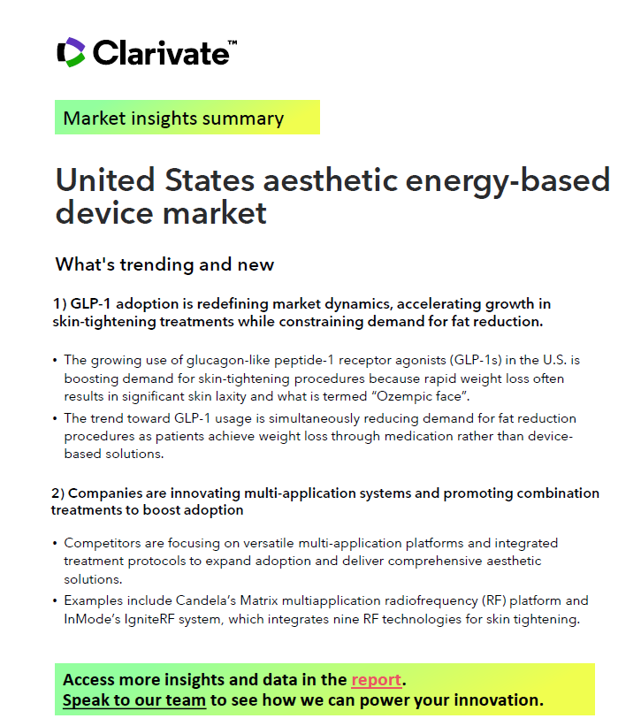 Read our Market Snapshot to access data and analysis on the state of the market for aesthetic energy-based devices in the US from 2019 through 2034.