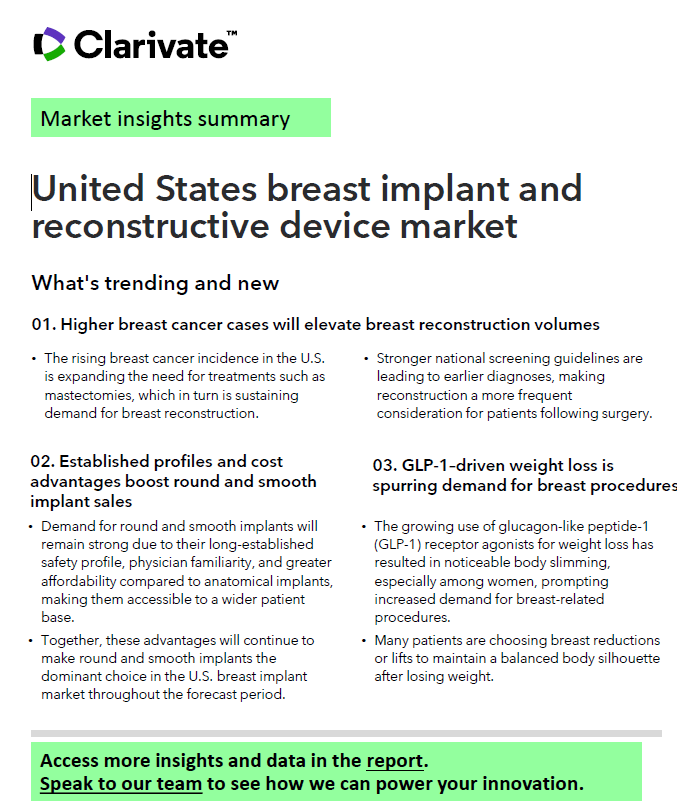 Read our Market Snapshot to access comprehensive data and analysis on the state of the market for breast implants and reconstructive devices in the US from 2019 through 2034.